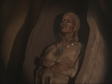 Bravant les avertissements de Zachary Cling au sujet d'une malédiction condamnant à la castration ceux qui tenteraient de s'en emparer, Sickles vole le pendentif de Myrna mais est tué par Enoch qui le castre avec des cisailles avant de s'enfuir avec la momie qui a été ramenée à la vie par le sacrilège et dont il est tombé amoureux.