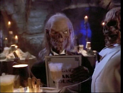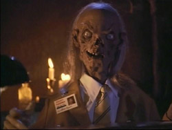 ![]() Interprète : John Kassir Première apparition : Épisode 1 Apparition(s) précédente(s) : Saison 1, Saison 2, Saison 3 Mort-vivant amateur d'humour macabre habitant une crypte cachée dans le sous-sol d'un vieux manoir abandonné. Il possède une vaste collection d'ouvrages compilant des récits horrifiques qu'il lit aux spectateurs tout en multipliant les jeux de mots. Il est le fils d'Enoch, un phénomène de foire à deux têtes, et de Myrna, la momie d'une esclave égyptienne. Il déteste Oliver Twist car il n'y a aucun twist à la fin. |