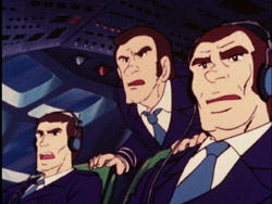 Pilotes d'avion intrigués par des images d'îles et de poissons volants projetés devant leur appareil par une invention de Zuril que ce dernier teste ainsi à leurs dépends.