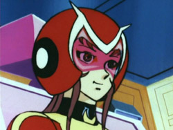 ![]() Première apparition en civil : Épisode 1 Première apparition en costume : Épisode 39 Pilote de : Marine Spazer Vénusia en VF. 17 ans. Lycéenne. Fille de Danbee Makiba et sœur aînée de Gorô. Elle est souvent embarrassée par le comportement de son père. Au début de la série, elle a peur des grenouilles et des tortues. Elle est amoureuse de Daisuke Umon / Duke Fleed, qu'elle laisse clairement indifférent. Elle découvre sa double identité quand il se transforme devant elle pour la sauver d'une chute mortelle. Par la suite, elle est irradiée lors d'une attaque des Forces Alliées de la Planète Vega, ce qui a pour effet de détruire ses cellules sanguines. Pour la sauver, Daisuke lui transfuse son sang, améliorant ainsi ses capacités physiques, ce qui lui permettra de remporter une compétition de gymnastique (Bien qu'évoquée en VF, cette relation de cause à effet est absente de la VO, mais on peut la déduire du fait qu'elle ne semblait posséder aucune compétence sportive particulière auparavant). Ne supportant plus d'être une simple spectatrice dans le conflit qui oppose la Terre à Vega, elle arrive tant bien que mal à convaincre Daisuke de la laisser combattre à ses côtés malgré ses réticences. Elle évolue beaucoup au cours de la série, débutant comme une lycéenne fleur bleue avant de devenir une combattante courageuse et volontaire.