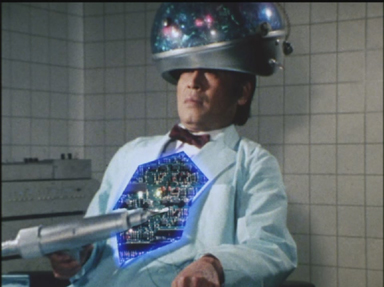 Attaqué par Silva alors qu'il se trouve avec les Biomen, le Pr Shibata perd les postiches qui le déguisent, révélant ainsi sa véritable identité.
