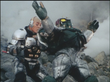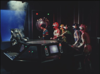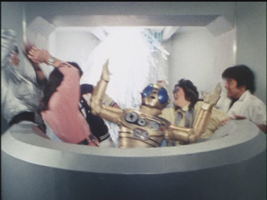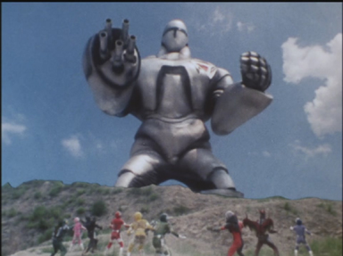 Doctorman crée les Mecaningens, des robots à l'apparence humaine qui commettent une série d'attentats suicides en se faisant exploser. Shingo Takasuki ( Green Two) et Ryûta Nanbara ( Blue Three) se découvrent heureusement respectivement une vue et une ouïe supérieures qui leur permettent de différencier les robots des humains. Doctorman continuera cependant à les utiliser à des fins d'espionage.