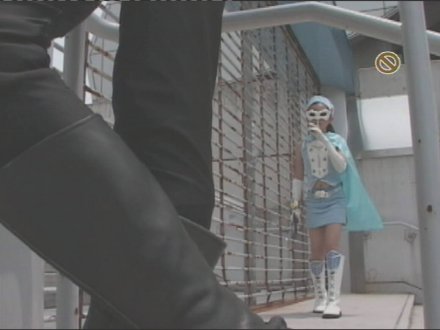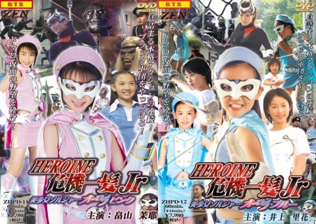 Te retourne pas, mais je crois qu'on nous attaque. Il faut dire que les trois premiers diptyques de la collection HEROINE KIKI IPPATSU Jr reposent sur un principe commun: bien qu'ils mettent en scène un duo d'héroïnes costumées, chacune des deux parties n'en montre qu'une seule en costume tandis que l'autre reste en civil. Ainsi, dans le premier volet, Aurora Blue ne peut pas se transformer parce que cette étourdie a oublié son morpher, et dans le deuxième, Aurora Pink est trop affaiblie des suites des blessures reçues dans le premier pour pouvoir se transformer.