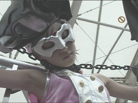 Vêtue d'un costume inspiré de celui de la célèbre BISHOUJO KAMEN POITRINE (je vous jure qu'elle s'appelle vraiment comme ça), Aurora est un personnage récurrent des productions pour adultes de la maison mère de ZEN PICTURES; mais elle a aussi été l'héroïne d'une histoire en deux parties éditée par ZEN. Différence notable: alors que l'Aurora de la maison-mère est, pour des raisons légales évidentes, majeure et vaccinée, celle de ZEN est une U-15. Je devrais plutôt dire "celleS de ZEN", car elles sont deux: Aurora Pink et Aurora Blue. ![]() De son vrai nom, Momoko Oda, Aurora Pink est une agente de la Défense Terrienne et, en tant que telle, elle affronte régulièrement la Black Gundan (légion noire) de Dokuro Kamen qui, comme son nom l'indique, dissimule ses traits derrière un masque en forme de tête de mort. Les deux autres principaux membres de Black Gundan sont le Dr Gil, le savant fou de service, et Moebius-1, la sexy-méchante de service (incarnée par Kisaki Tokumori qui, comme à son habitude, cabotine avec un plaisir communicatif).