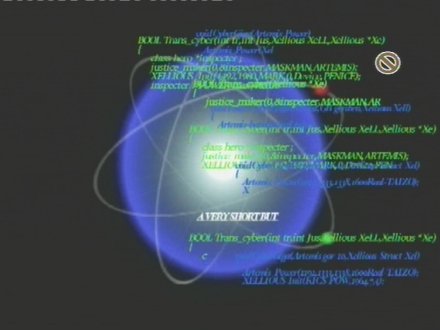 Cette scène se situe juste avant que Moebius-1 ne surgisse par surprise devant les héroïnes. Le problème, c'est qu'on voit ses pieds sur la chaise au premier plan!