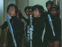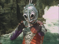 Cyborg amphibien armé d'une pince et crachant une mousse qui s'enflamme au contact de l'air. Chargé d'enlever le Pr Sakai ainsi que son épouse Keiko et leur fils Masao.